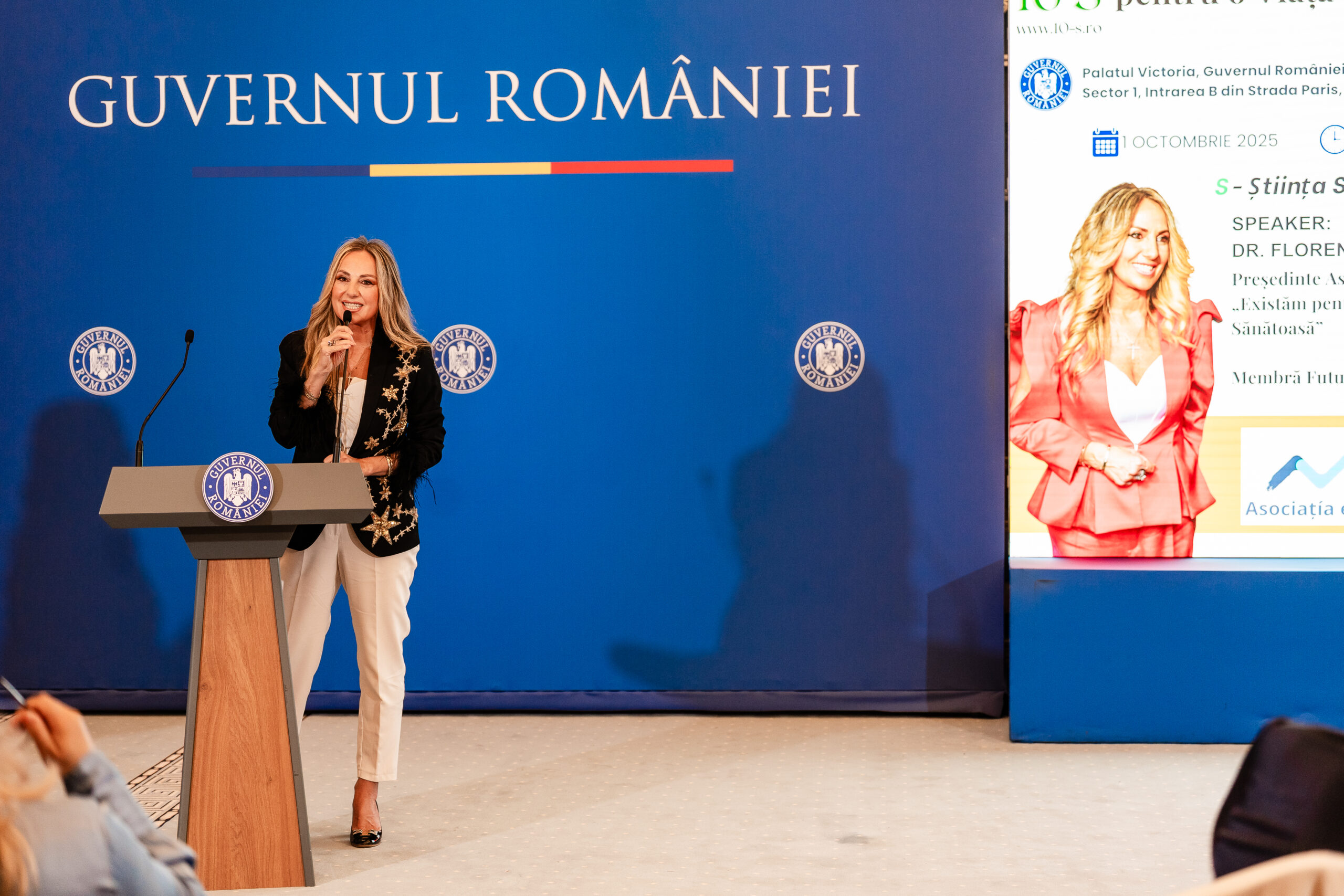 Dr. Florentina Opriș, Președinte al Asociației „Existăm pentru o Viață Sănătoasă”, speaker la pilonul „S – Știința Stării de Bine” în cadrul Conferinței Naționale „10