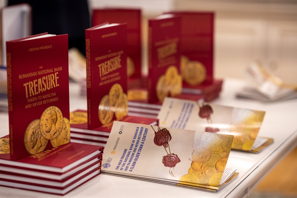 Expoziție și dineu la Washington subliniază Tezaurul României trimis la Moscova și niciodată returnat Expoziție și dineu la Washington dedicate Tezaurului României trimis la Moscova și niciodată returnat. Ambasada României în SUA începe astfel seria evenimentelor prin care va face cunoscut în Statele Unite cazul creanței pe care statul român