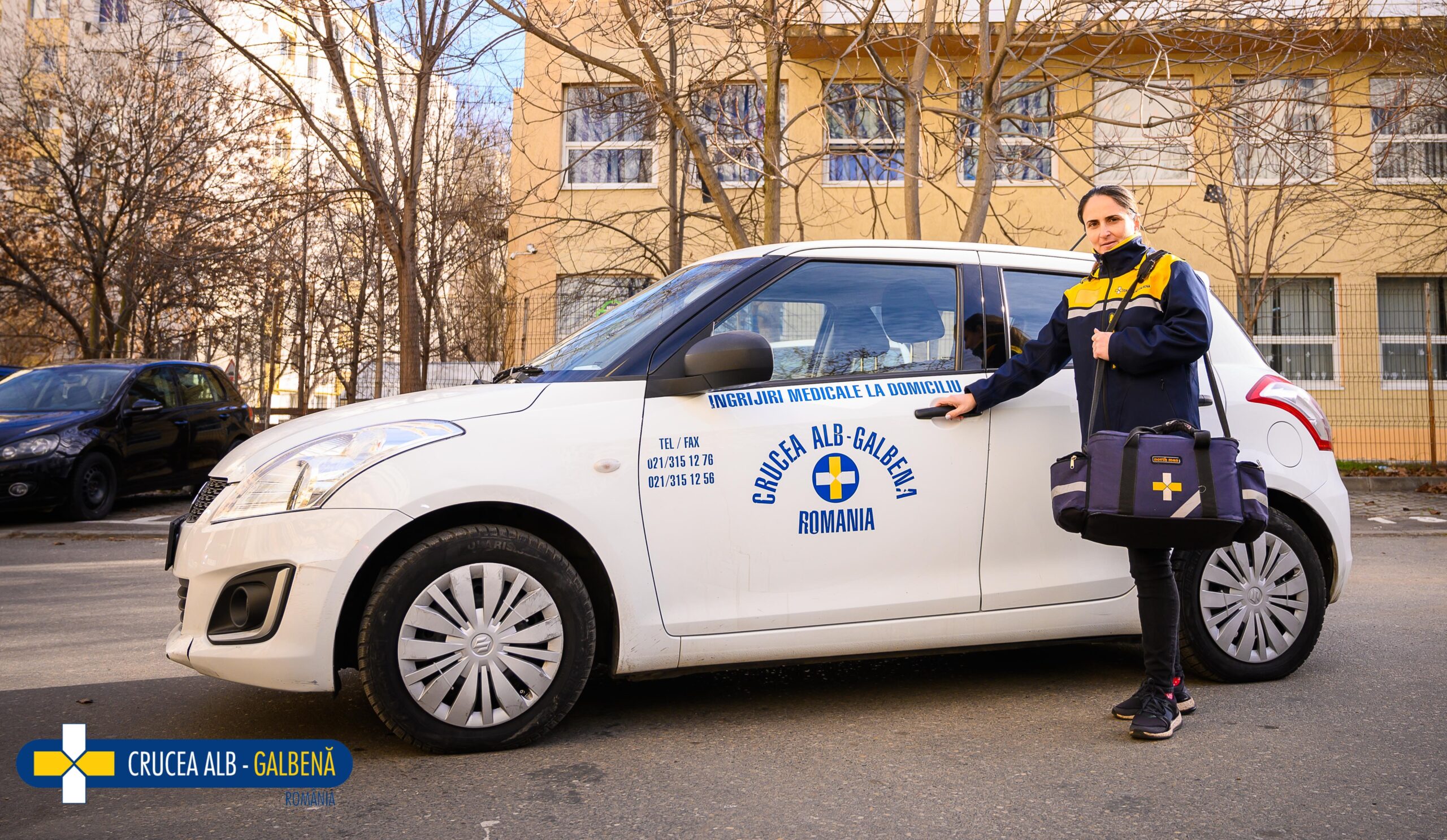 Prin Crucea Alb – Galbenă România, pacienții pot beneficia, la cele mai înalte standarde, la recomandarea medicului de: administrarea medicației, pansamente, perfuzii, sondaje, kinetoterapie, consult medical, precum și EKG, monitorizare prin sistemul de teleasistență si teleurgență Butonul Roșu.