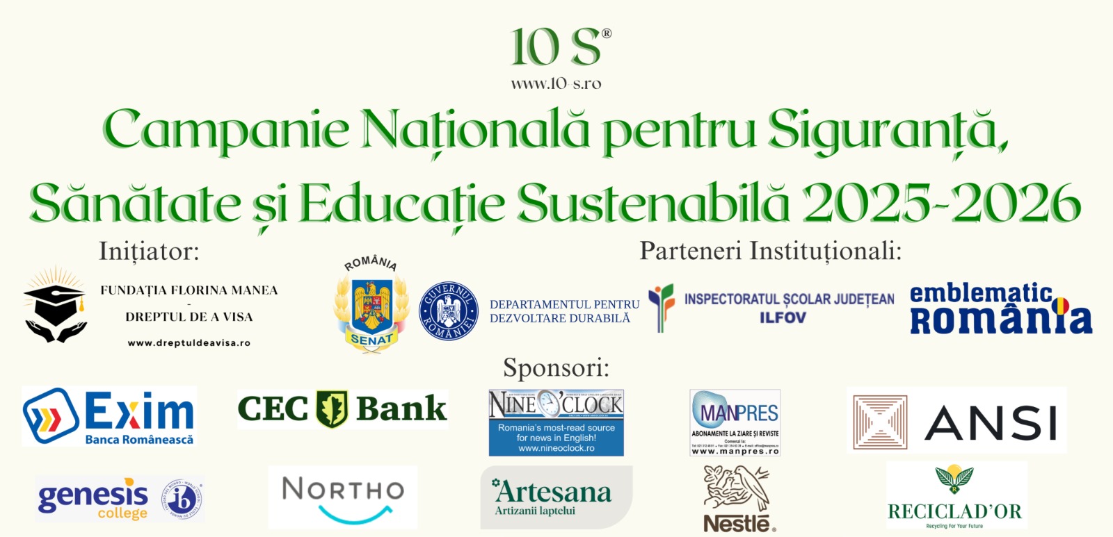 Proiectul educațional „10 S pentru o Viață de Succes”, desfășurat în perioada 2025–2026, este parte a Campaniei Naționale pentru Siguranță, Sănătate și Educație Sustenabilă, inițiată de Fundația Florina Manea – Dreptul de a Visa.
