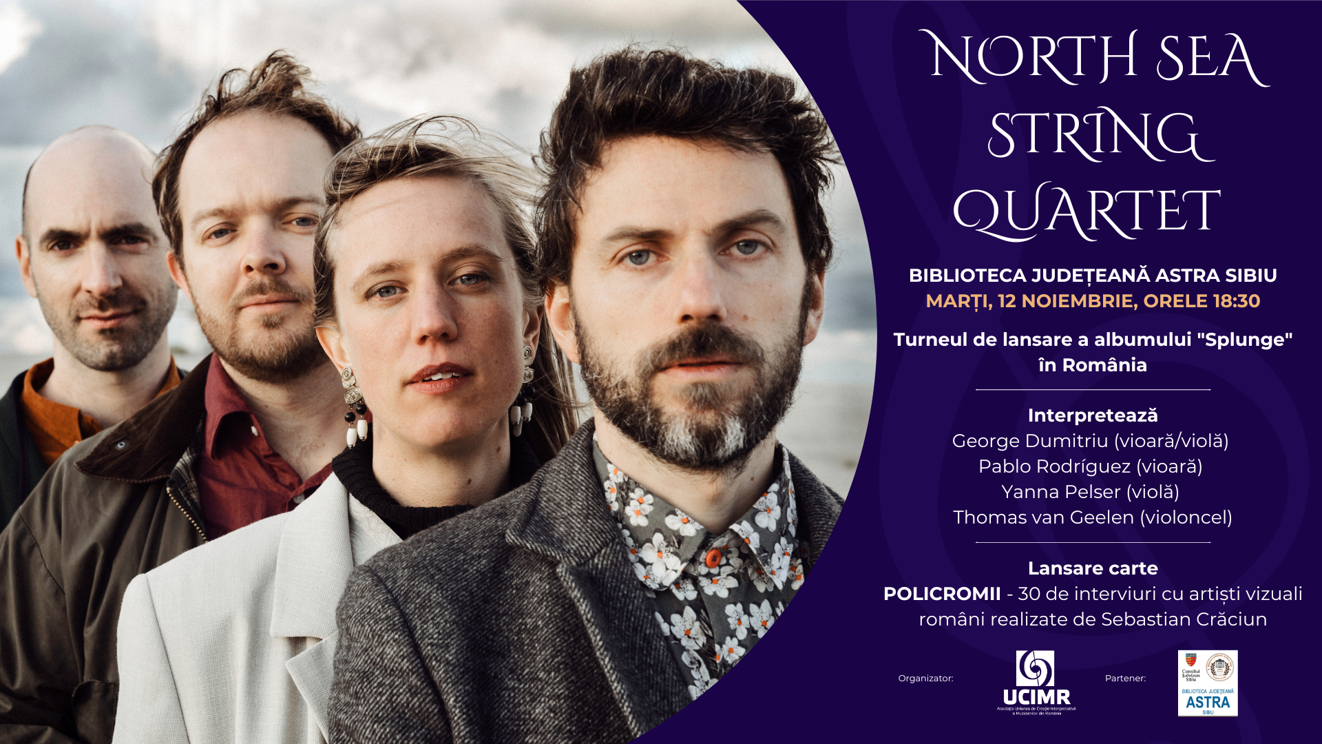 Astfel, Cvartetul de coarde jazz al momentului din Olanda, North Sea String Quartet își lansează albumul de debut, “Splunge”, și concertează cu această ocazie în mai multe orașe din România. Publicul îi poate asculta luni, 11 noiembrie, de la orele 19:00, la Ateneul Român din București. În plus, marți, 12 noiembrie, orele 18:30, publicul îi poate audia la Biblioteca Județeană ASTRA Sibiu.